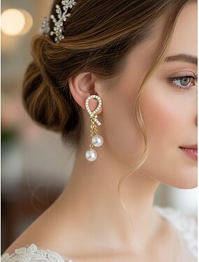 Brincos de pérolas artificiais femininas com design em forma de lágrima e strass, elegante estilo dourado pendurado, adequados para deslocamento diário, escritório, casamento, festa e noite
