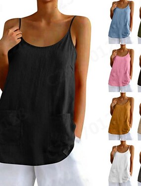 Mulheres Malha Íntima Camisa de linho sintético Bolsos Tecido Moda à moda Clássico Sem Manga Gola Redonda Tops regulares Diário Para Noite Final de semana Azul Preto Branco Amarelo Rosa Verão