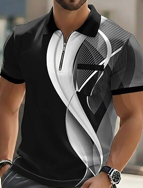 Homens Tiras Horizontais Camisas Polo Manga Curta Camisas polo Camisas de colarinho Business casual Ao ar livre Roupa Esportiva Feriado Bolsos Impressão 3D Polo com fecho de correr de um quarto