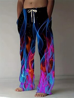 Homens 3D impressão Labareda Calças Calça casual Calças largas Cintura Média Moda Casual Ao ar livre Férias Cintura elástica com cordão Calças de linho com bolsos Primavera Outono Impressão 3D Azul