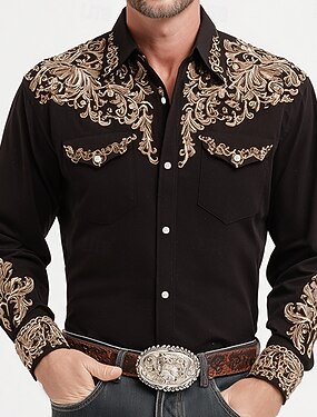 Homens Rolar Estampa floral Étnico Camisa Social camisa ocidental Camisa de caubói Manga Longa Vintage retrô Casual Ao ar livre Roupa de Trabalho Primavera Outono Aberto para a Lateral Dois bolsos