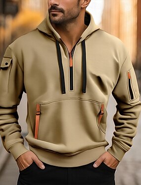 Homens Moletom Quarter Zipper Hoodie Preto Vinho Azul Marinha Cáqui Cinzento Com Capuz Tecido Bolsos Desportos e Ar livre Diário Feriado Poliéster Roupa de rua Básico Casual Primavera Outono Roupa