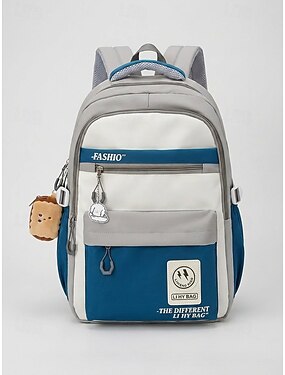 Mochila feminina de poliéster com pingente charmoso, grande capacidade, alças ajustáveis, compartimento para malas, várias cores, bolsa estilosa para escola, viagens, atividades ao ar livre e uso