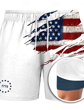 Dia da Independência Homens 4 de julho - 250º aniversário dos EUA Bandeira dos EUA Patriótico Shorts Forrados Shorts de Natação 2 em 1 Calção Justo de Natação Cintura Média Havaiana Feriado Bolsos