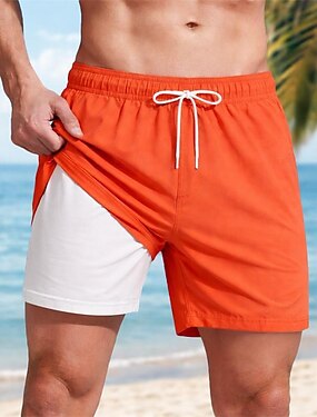 Homens 2pcs Calção Justo de Natação Shorts de natação boxer Calção Bolsos Cintura elástica Bloco de cor Tecido Cor Única Respirável Acima do Joelho Casual Praia Natação Férias Moda Azul Preto