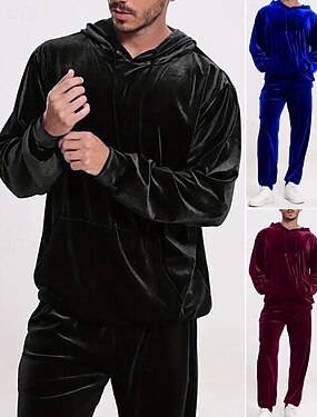 Homens Moletom Moletom com capuz e calças Conjunto de roupas Conjunto de moletons Capuz Ao ar livre Diário Esportes Com Cordão Bolsos Tecido Vermelho Vinho Preto Azul Royal Poliéster Roupas Esportivas