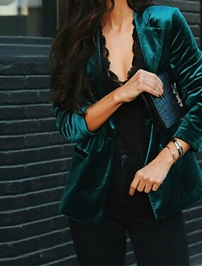 Mulheres Blazer Blazers de veludo Confortável Bolsos Elegante Moda Ao ar livre Tecido Para Noite Casual / Diário Final de semana Cardigã Padrão Lapela Normal Manga Longa agasalhos Preto Vinho Verde