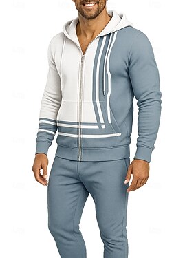 Homens Moletom Agasalho de 2 peças Conjuntos de moletom Com Cordão Zip Up Geométrica Conjuntos Outono Inverno Azul Vocação Exterior Viagem Leve Da Moda Manga Longa Esporte Roupas Esportivas Com