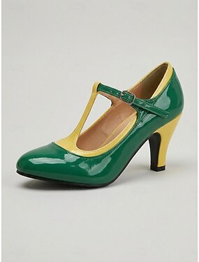 Oxfords femininos retrô dos anos 1950, com tiras em T e salto bloco, com franjas, design exclusivo de blocos de cores para estilo casual, diário e urbano.