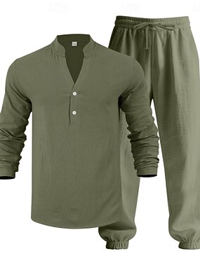 Homens Camisa de linho 2 Peças Camisa Popover E Calças de linho Calças Calça casual Definir Tecido Casual Diário Ao ar livre Decote V Manga Longa Verão Primavera Moda Casual Confortável Roupa