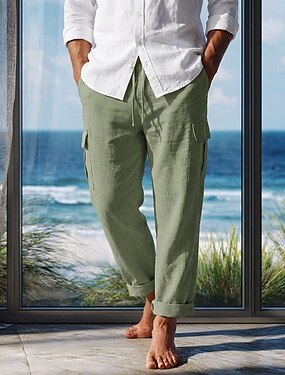 Homens Calça cargo Calças de linho Calça verão Calça casual Com Cordão Cintura elástica Bolso multi Tecido Conforto Respirável Comprimento total Casual Diário Praia Férias Moda Azul Preto Sem