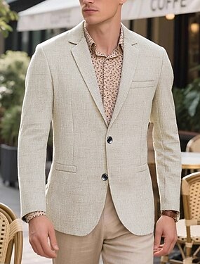 Homens Blazer O negócio Coquetel Festa de Casamento Moda Casual Primavera Outono Poliéster Tecido Bolsos Botões Confortável Não Trespassado Jaqueta esporte Azul Céu Café