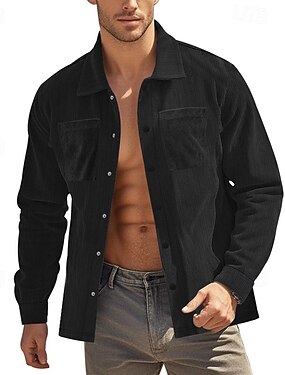 Homens Camiseta de Veludo Caqui Verde Tropa Bege Cinzento Manga Longa Tecido Colarinho Aberto para a Lateral Casual Ao ar livre Bolsos Roupa Vintage Clássico Casual Roupa de Trabalho