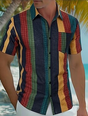 Homens Listrado Estampa Geométrica camisa de colarinho Camisa de lã Jaqueta Camisa Manga Longa Roupa de rua Esportivo Casual Ao ar livre Diário Para Noite Verão Primavera Aberto para a Lateral Bolsos