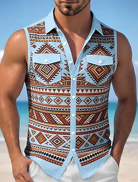Homens asteca Estampa Geométrica Étnico Camisa Social camisa de botão camisa sem manga Sem Manga Vintage retrô Ao ar livre Trabalho Casual Verão Primavera Aberto para a Lateral Impressão 3D Dois