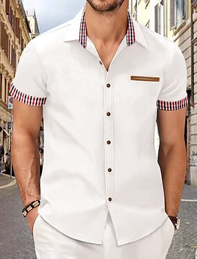 Homens Camisa Social Saia camisa de botão Tecido Casual Diário Preto Branco Azul Céu Cinzento Manga Curta Aberto para a Lateral Verão Primavera Roupa Patchwork
