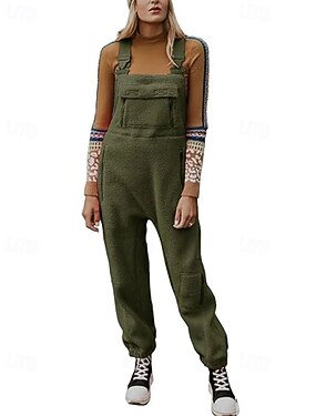 Mulheres Normal Macacão Ativo Côr Sólida Sem Manga Perna larga Decote Quadrado Bolsos Cintura Alta Diário Férias Normal Preto Verde Tropa Azul Marinha Verão