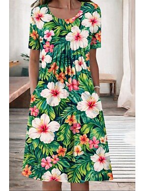 Mulheres Vestido midi Vestido casual Vestido de verão Moda Moderno Diário Praia Final de semana Normal Floral Manga Curta Gola Redonda Azul Branco Vermelho Azul Marinha Verão