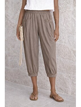 Mulheres Calças Calça verão Calças largas Calças Cropped Férias Moda Básico Comprimento da panturrilha Cintura Alta Tecido Com Cordão Bolsos Cintura elástica Conforto Macio Confortável Sem