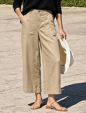 Mulheres Calças de linho de algodão Calças Calça casual Calça verão Férias Moda Casual Diário Comprimento total Cintura Alta Côr Sólida Tecido Bolsos Conforto Macio Respirável Sem Elasticidade Diário
