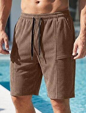 Homens Calção Shorts casuais Shorts de veludo cotelê Bolsos Cintura elástica Tecido Conforto Respirável Curto Ao ar livre Férias Roupa Diária Moda Roupa de rua Preto Cáqui Micro-Elástica