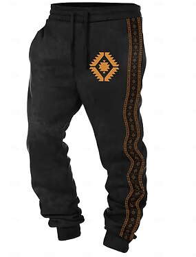 Homens asteca Estampa Geométrica Étnico Calças Esportivas Corredor Calças Cintura Média Cintura elástica com cordão Ativo Vintage Casual Ao ar livre Rua Bolsos Primavera Outono Impressão 3D Preto