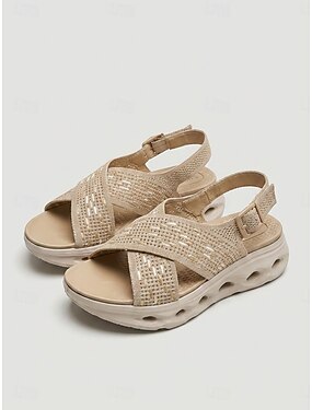 Sandálias esportivas femininas com suporte para o arco do pé – sandálias plataforma de malha respirável com tira ajustável, calçados leves e acolchoados para caminhadas, viagens e atividades ao ar