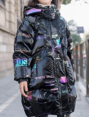 Infantil Para Meninas Jaqueta de penas Casaco puffer Letra Esportes Bolsos Mantenha Quente A prova de Vento Ao ar livre Casaco agasalhos 5-12 anos Inverno Preto Rosa Vermelho