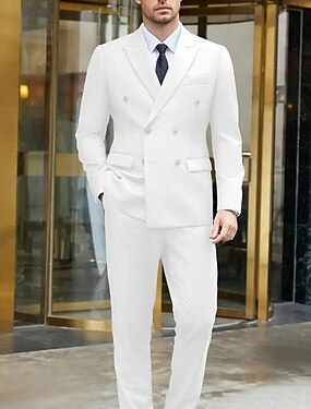 Homens Graduação Blazer Conjunto O negócio Coquetel Festa de Casamento Moda Casual Primavera & Outono Poliéster Côr Sólida Bolsos 2 Peças Confortável Não Trespassado Jaqueta esporte Preto Branco
