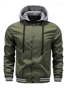 Homens jaqueta leve Jaqueta casual Casaco com capuz Férias Diário Respirável Bolsos Primavera Outono Listra Moda Clássico Com Capuz Padrão Preto Verde Tropa Casaco