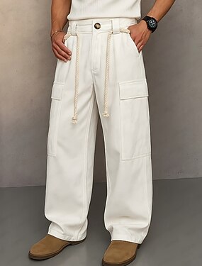 Homens Calças Cargo Calças Bolsos Botões Tecido Conforto Comprimento total Casa Ao ar livre Streetwear Férias Moda Preto Branco Sem Elasticidade