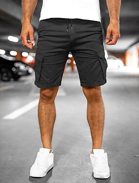 Homens Bermuda Cargo Calção Shorts de trabalho Botão Bolsos Tecido Vestível Comprimento do joelho Ao ar livre Diário Moda Clássico Preto Branco