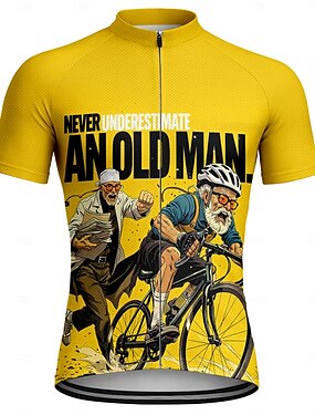 Masculino Camisa para Ciclismo Jersey em declive Nunca subestime um velho com uma bicicleta. Manga Curta Moto Camiseta com 3 bolsos traseiros Resistente a UV Secagem Rápida Com bolsos Zíper Frontal