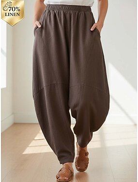 Mulheres Calças de linho de algodão chinês Calça verão Calçolas Férias Roupa de rua Básico Comprimento total Cintura Média Tecido Bolsos Cintura elástica Confortável Conforto Sem Elasticidade Diário