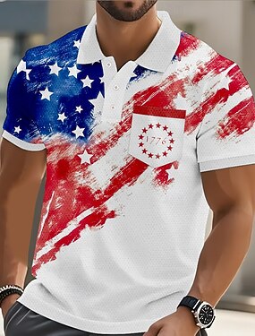 4 de julho de 2026 250º Homens American US Flag Pólo Manga Curta Camisas polo Camisas de colarinho Casual Ao ar livre Roupa Esportiva Roupa Diária Bolsos Impressão 3D Verão Azul-Branco Claro