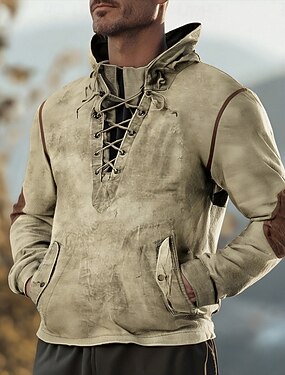 Homens Moletom Khaki claro. Marron Cáqui Com Capuz Xadrez Patchwork Bolso frontal Desportos e Ar livre Diário Feriado Roupa de rua Básico Casual Primavera & Outono Roupa Moletons Moletons