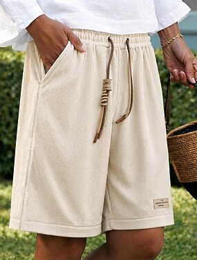 Mulheres Calção Shorts casuais Shorts de veludo cotelê Shorts largos Férias Moda Casual Diário Curto Cintura Alta Côr Sólida Tecido Bolsos Cintura elástica Conforto Leve Macio Sem Elasticidade Diário