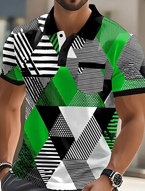 Homens Geométrico Linha Pólo Manga Curta Camisas polo Camisas de colarinho Business casual Ao ar livre Roupa Esportiva Roupa Diária Bolsos Impressão 3D Botões Verão Castanho Escuro Verde Escuro Azul