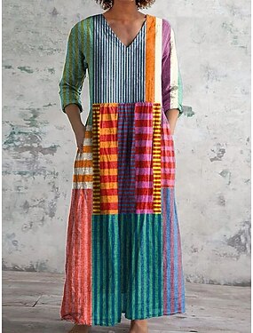 Mulheres Vestido midi Vestido de turno Casual Diário Normal Gráfico Geométrica Manga Longa Decote V Amarelo Vermelho Azul Laranja Primavera Outono