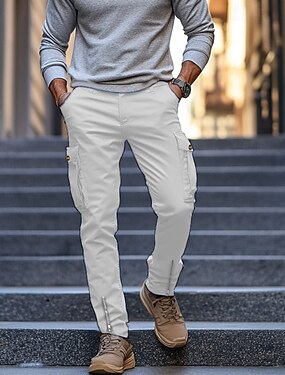 Homens Calças Cargo Calças Calça casual Zíper Bolsos Tecido Conforto Respirável Comprimento total Casual Diário Feriado Moda Roupa de rua Preto Branco Micro-Elástica