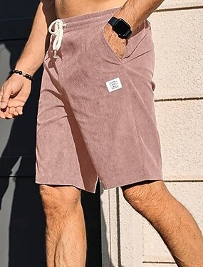 Homens Calção Shorts de praia Shorts casuais Shorts de veludo cotelê Bolsos Cintura elástica Tecido Conforto Respirável Comprimento do joelho Ao ar livre Praia Férias Férias Moda Azul Preto