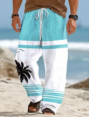 Homens Coqueiro Natureza e Paisagem Plantas Tropicais Calças Calça casual Calças largas Cintura Média Havaiana Férias Cintura elástica com cordão Calças de linho com bolsos Verão Primavera Impressão