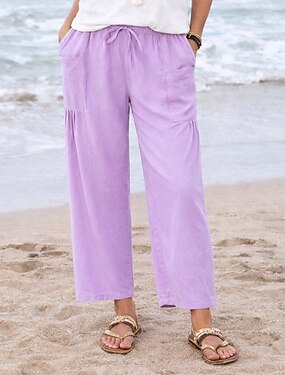 Mulheres Linho de algodão sintético Perna larga Calças Calça casual Férias Moda Roupa de rua Comprimento total Cintura Alta Côr Sólida Bolsos Cintura elástica Confortável Micro-Elástica Diário Férias