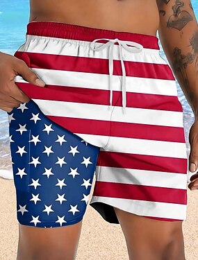 Dia da Independência Homens 4 de julho - 250º aniversário dos EUA Bandeira dos EUA Patriótico Shorts Forrados Shorts de Natação 2 em 1 Calção Justo de Natação Cintura Média Havaiana Feriado Bolsos