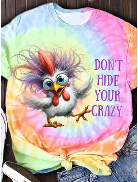Mulheres Camiseta Imprimir Gráfico Animal Tintura Tie Dye Vintage à moda Clássico Manga Curta Gola Redonda Tops regulares Diário Preto Vermelho Arco-íris Verão Primavera