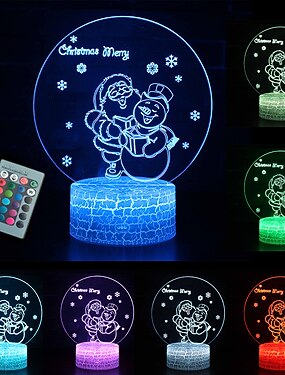 3d luzes da noite de natal luzes de presente boneco de neve lâmpada de cabeceira para crianças quarto lareira enfeites de mesa para casa decorações de natal e presente para crianças