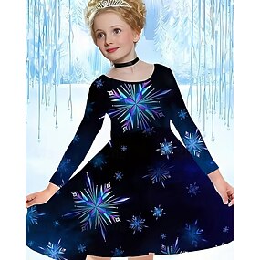 Meninas 3D Gráfico Floco de Neve Vestido Vestido Floco de Neve Manga Longa Verão Primavera Férias Diário Feriado Princesa Lindo Doce Infantil 4-12 anos Vestido casual Vestido A Line Altura dos Joelhos