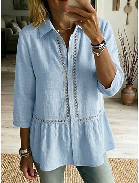 Mulheres Camisa Social Tecido Vintage à moda Aberto para a Lateral Tops longos Casual Azul Preto Branco Amarelo Rosa Verão Primavera