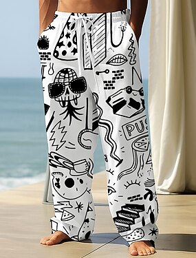 Homens Boneco de palito Calças Calças largas Calça casual Cintura Média Vintage retrô Ao ar livre Férias Streetwear Cintura elástica com cordão Calças de linho com bolsos Primavera Outono Impressão 3D