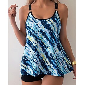 Mulheres Roupa de banho Tankini 2 Peças Estampado Boyleg Secagem Rápida Elástico Sem Manga Roupa de Banho roupa de banho Surfe Praia Natação Verão